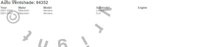Below is an abbreviated list of applications for the Ventvisor Deflector 4 pc..Montero, Mitsubishi, 2002, 2001