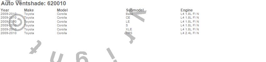 Below is an abbreviated list of applications for the Aeroskin Chrome Hood Protector.Corolla, Toyota, 2010, 2009