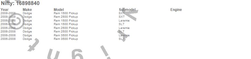 Below is an abbreviated list of applications for the Pro-Line Replacement Carpet.Ram 1500, Ram 2500, Ram 3500, Dodge, 2008, 2007, 2006