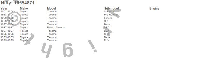 Below is an abbreviated list of applications for the Pro-Line Replacement Carpet.Tacoma, Toyota, 2004, 2003, 2002, 2001, 2000, 1999, 1998, 1997, 1996, 1995