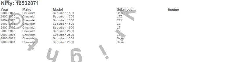 Below is an abbreviated list of applications for the Pro-Line Replacement Carpet.Suburban 1500, Suburban 2500, Chevrolet, 2006, 2005, 2004, 2003, 2002, 2001, 2000