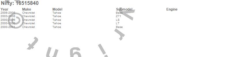 Below is an abbreviated list of applications for the Pro-Line Replacement Carpet.Tahoe, Chevrolet, 2006, 2005, 2004, 2003, 2002, 2001, 2000