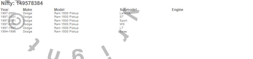 Below is an abbreviated list of applications for the Pro-Line Replacement Carpet.Ram 1500, Dodge, 2001, 2000, 1999, 1998, 1997, 1996, 1995, 1994