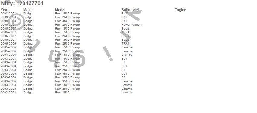 Below is an abbreviated list of applications for the Pro-Line Replacement Carpet.Ram 1500, Ram 2500, Ram 3500, Dodge, 2008, 2007, 2006, 2005, 2004, 2003