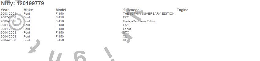 Below is an abbreviated list of applications for the Pro-Line Replacement Carpet.F-150, Ford, 2008, 2007, 2006, 2005, 2004