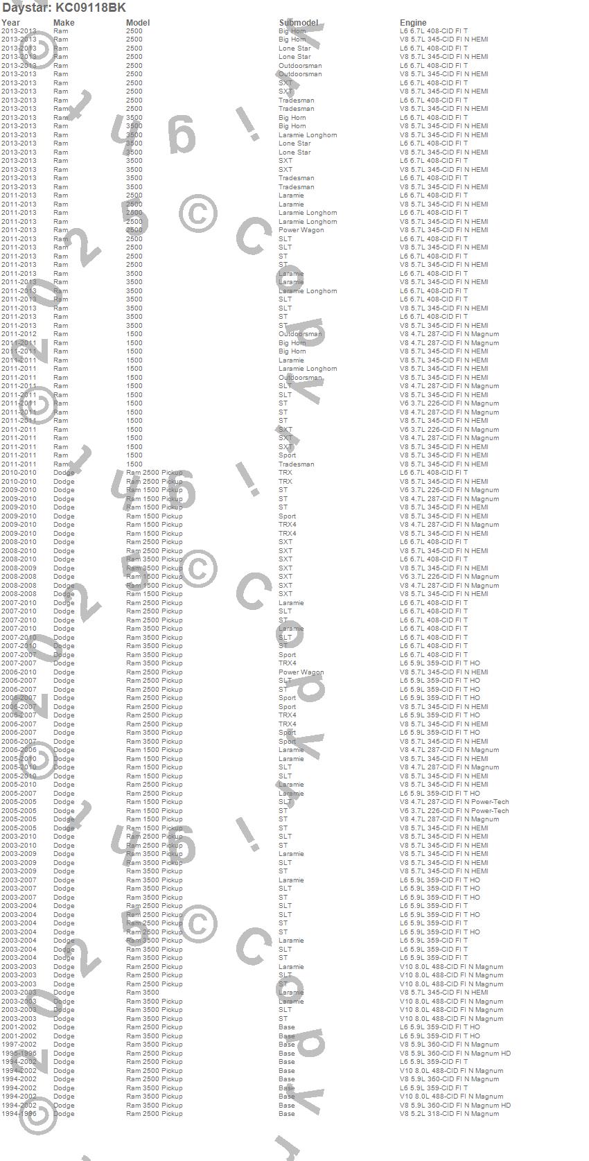 Below is an abbreviated list of applications for the Suspension Combo Kit.1500, 2500, 3500, Ram 1500, Ram 2500, Ram 3500, Dodge, Ram, 2013, 2012, 2011, 2010, 2009, 2008, 2007, 2006, 2005, 2004, 2003, 2002