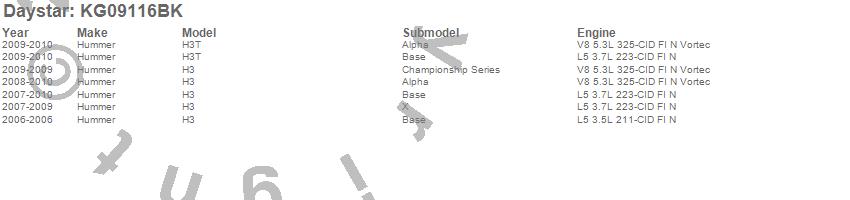 Below is an abbreviated list of applications for the Suspension System/Lift Kit.H3, H3T, Hummer, 2010, 2009, 2008, 2007, 2006