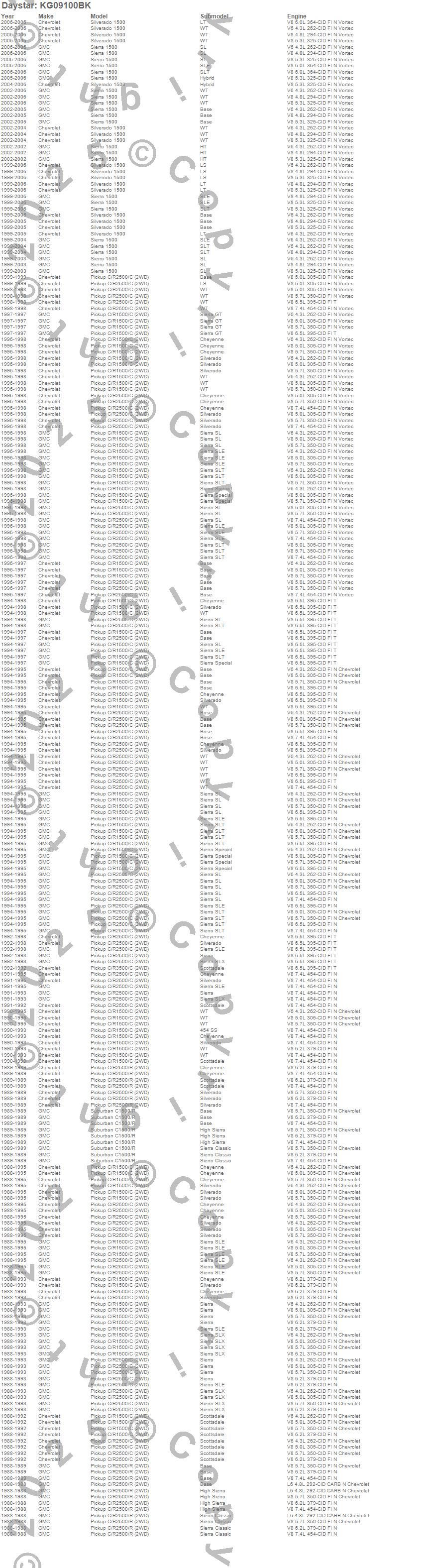 Below is an abbreviated list of applications for the Suspension Coil Spring Spacer Leveling Kit.C1500 Pickup, C2500 Pickup, C3500 Pickup, R2500 Pickup, Sierra 1500, Silverado 1500, Chevrolet, GMC, 2006, 2005, 2004, 2003, 2002, 2001, 2000, 1999, 1998, 1997, 1996, 1995