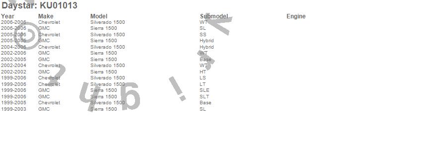 Below is an abbreviated list of applications for the Shock Absorber.Sierra 1500, Silverado 1500, Chevrolet, GMC, 2006, 2005, 2004, 2003, 2002, 2001, 2000, 1999