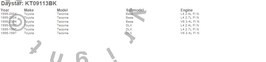 Below is an abbreviated list of applications for the Suspension Strut Spacer Leveling Kit.Tacoma, Toyota, 2004, 2003, 2002, 2001, 2000, 1999, 1998, 1997, 1996, 1995
