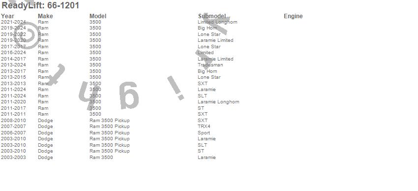 Below is an abbreviated list of applications for the Rear Block Kit.2500, 3500, Ram 2500, Ram 3500, Dodge, Ram, 2025, 2024, 2023, 2022, 2021, 2020, 2019, 2018, 2017, 2016, 2015, 2014, 2013, 2012