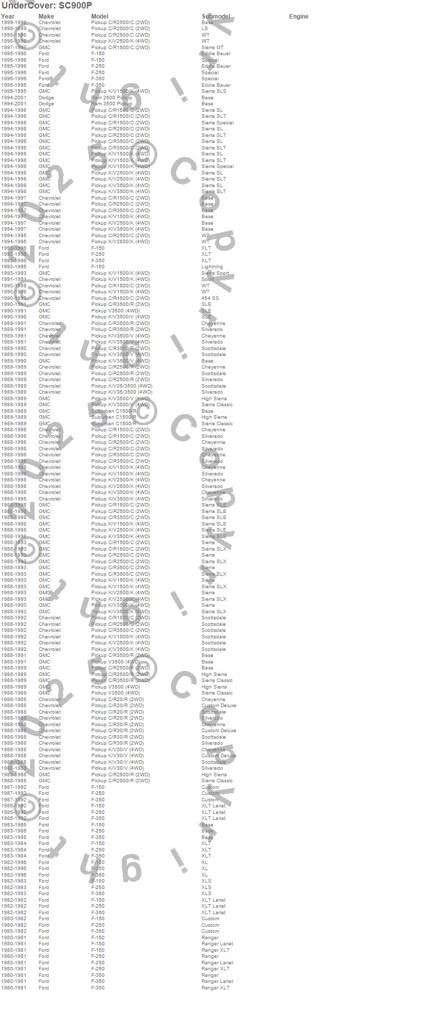 Below is an abbreviated list of applications for the Swing Case Storage Box.C1500 Pickup, C2500 Pickup, C3500 Pickup, F-150, F-250, F-350, K1500, K1500 Pickup, K2500 Pickup, K3500 Pickup, R20 Pickup, R2500 Pickup, R30 Pickup, R3500 Pickup, Ram 2500, Ram 3500, V30 Pickup, V3500 Pickup, Chevrolet, Dodge