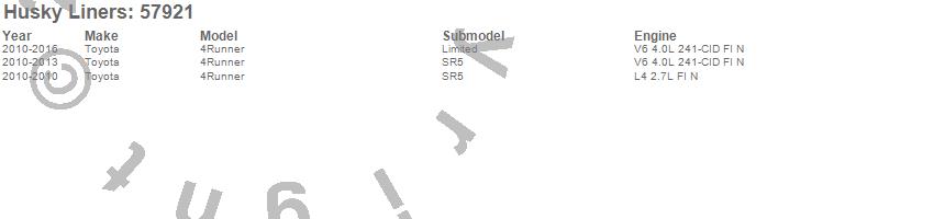 Below is an abbreviated list of applications for the Custom Molded Mud Guards.4Runner, Toyota, 2016, 2015, 2014, 2013, 2012, 2011, 2010