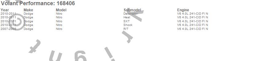 Below is an abbreviated list of applications for the Cold Air Intake Kit.Nitro, Dodge, 2011, 2010, 2009, 2008, 2007