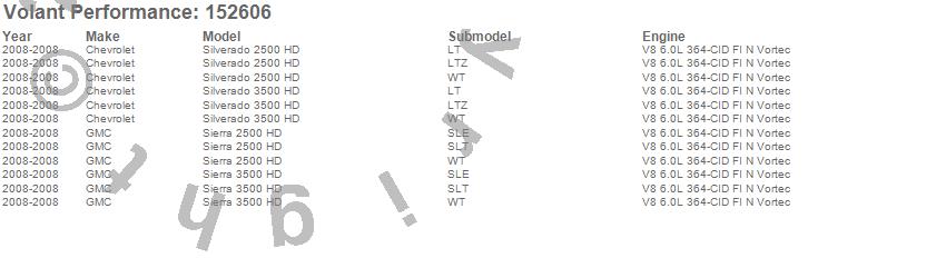 Below is an abbreviated list of applications for the Cold Air Intake Kit.Sierra 2500 HD, Sierra 3500 HD, Silverado 2500 HD, Silverado 3500 HD, Chevrolet, GMC, 2008