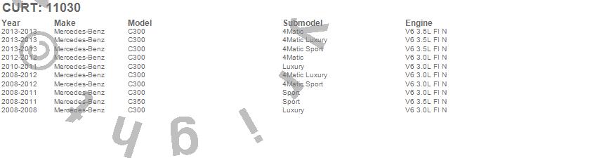 Below is an abbreviated list of applications for the Class I 1.25 in. Receiver Hitch.C300, C350, Mercedes-Benz, 2013, 2012, 2011, 2010, 2009, 2008