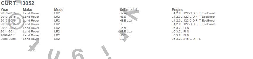Below is an abbreviated list of applications for the Class III 2 in. Receiver Hitch.LR2, Land Rover, 2015, 2014, 2013, 2012, 2011, 2010, 2009, 2008