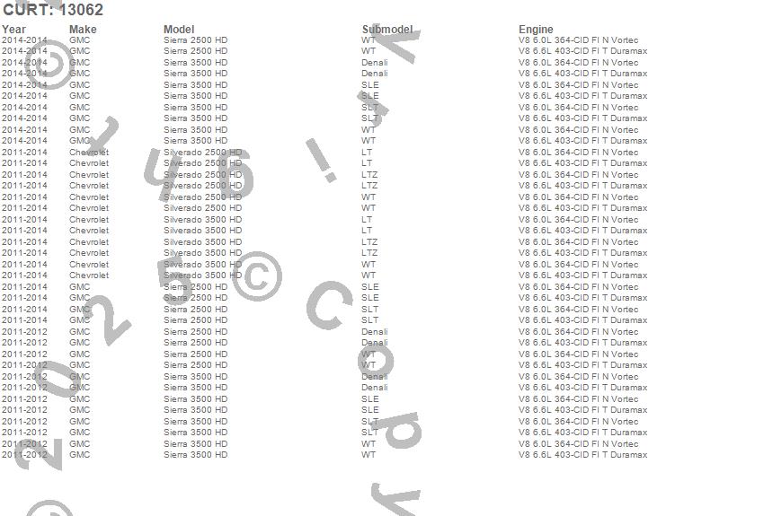 Below is an abbreviated list of applications for the Class III 2 in. Receiver Hitch.Sierra 2500 HD, Sierra 3500 HD, Silverado 2500 HD, Silverado 3500 HD, Chevrolet, GMC, 2014, 2013, 2012, 2011