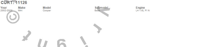 Brand: CURTPart Number: 11126Trailer Hitch Type: Rear - 2000lbs. Gross Trailer Weight - 200lbs. Tongue WeightUPC: 612314005765
