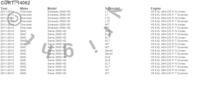Below is an abbreviated list of applications for the Class IV 2 in. Receiver Hitch.Sierra 2500 HD, Sierra 3500 HD, Silverado 2500 HD, Chevrolet, GMC, 2014, 2013, 2012, 2011