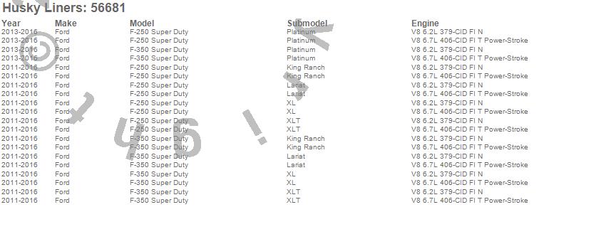 Below is an abbreviated list of applications for the Custom Molded Mud Guards.F-250 Super Duty, F-350 Super Duty, Ford, 2016, 2015, 2014, 2013, 2012, 2011