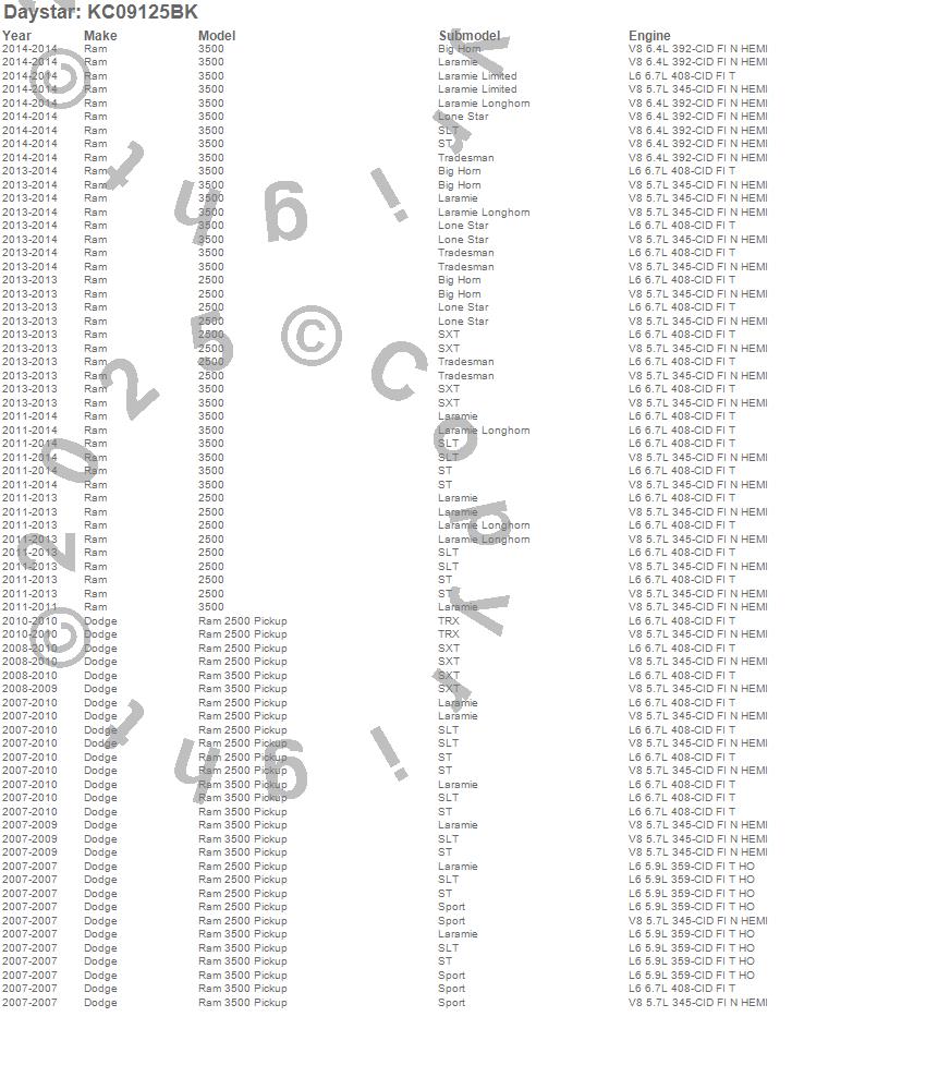 Below is an abbreviated list of applications for the Suspension Coil Spring Spacer Leveling Kit.2500, 3500, Ram 2500, Ram 3500, Dodge, Ram, 2014, 2013, 2012, 2011, 2010, 2009, 2008, 2007