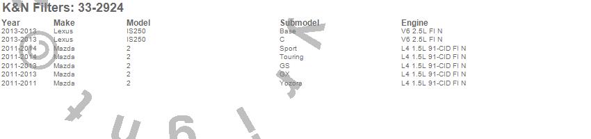 Below is an abbreviated list of applications for the Air Filter.2, IS250, Lexus, Mazda, 2014, 2013, 2012, 2011