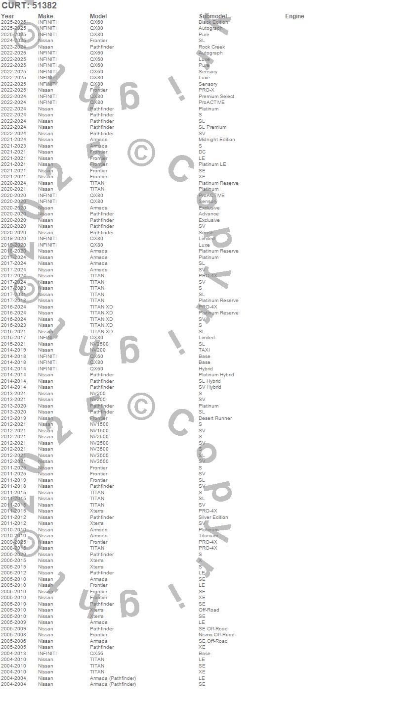 Below is an abbreviated list of applications for the Brake Control Adapter Harness.Armada, Armada (Pathfinder), Frontier, NV1500, NV200, NV2500, NV3500, Pathfinder, QX56, QX60, QX80, TITAN, TITAN XD, Xterra, INFINITI, Nissan, 2026, 2025, 2024, 2023