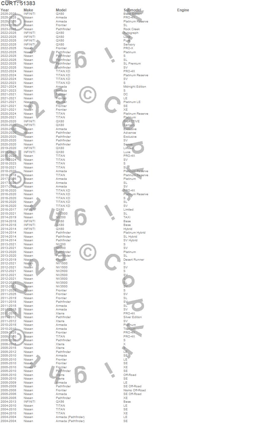 Below is an abbreviated list of applications for the Brake Control Adapter Harness.Armada, Armada (Pathfinder), Frontier, NV1500, NV200, NV2500, NV3500, Pathfinder, QX56, QX60, QX80, TITAN, TITAN XD, Xterra, INFINITI, Nissan, 2026, 2025, 2024, 2023