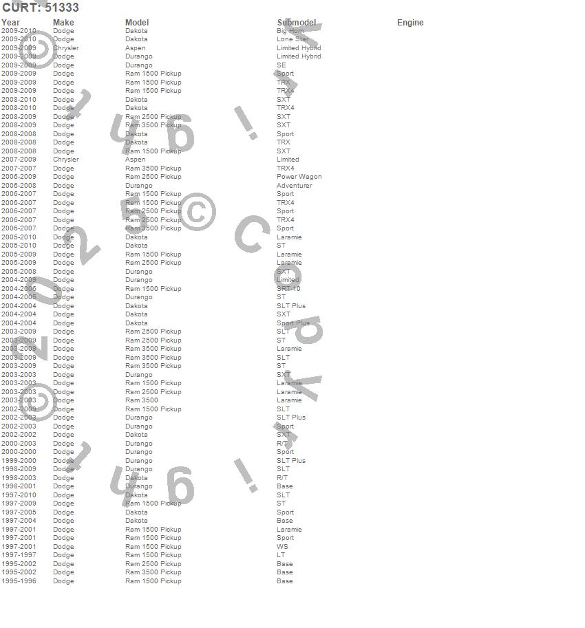 Below is an abbreviated list of applications for the Brake Control Adapter Harness.Aspen, Dakota, Durango, Ram 1500, Ram 2500, Ram 3500, Chrysler, Dodge, 2010, 2009, 2008, 2007, 2006, 2005, 2004, 2003, 2002, 2001, 2000, 1999
