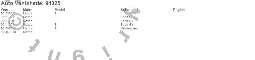 Below is an abbreviated list of applications for the Ventvisor Deflector 4 pc..3, Mazda, 2013, 2012, 2011, 2010