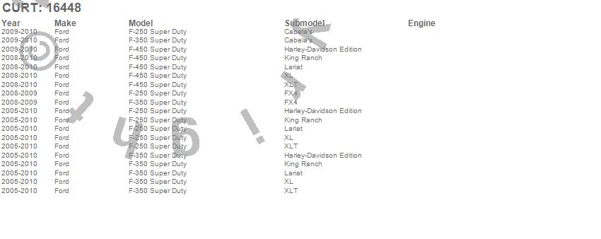 Below is an abbreviated list of applications for the Fifth Wheel Custom Bracket Kit.F-250 Super Duty, F-350 Super Duty, F-450 Super Duty, Ford, 2010, 2009, 2008, 2007, 2006, 2005