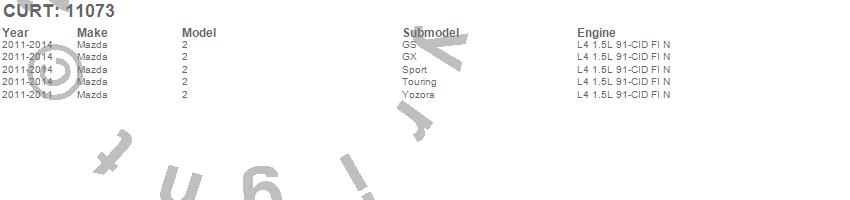 Brand: CURTPart Number: 11073Trailer Hitch Type: Rear - 2000lbs. Gross Trailer Weight - 200lbs. Tongue WeightUPC: 612314028245
