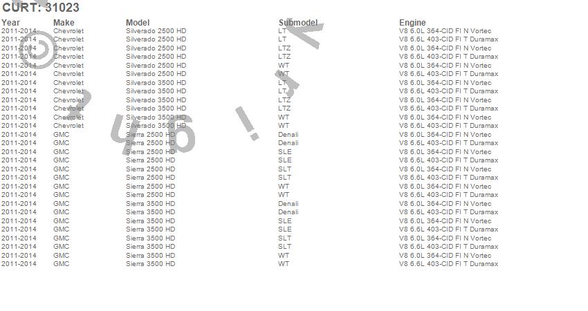 Below is an abbreviated list of applications for the 2 in. Receiver Hitch.Sierra 2500 HD, Sierra 3500 HD, Silverado 2500 HD, Silverado 3500 HD, Chevrolet, GMC, 2014, 2013, 2012, 2011