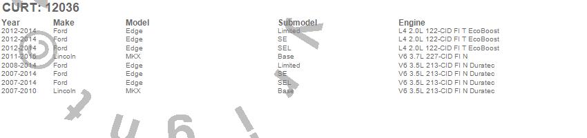 Below is an abbreviated list of applications for the Class II 1.25 in. Receiver Hitch.Edge, MKX, Ford, Lincoln, 2015, 2014, 2013, 2012, 2011, 2010, 2009, 2008, 2007