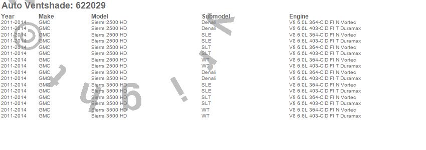 Below is an abbreviated list of applications for the Aeroskin Chrome Hood Protector.Sierra 2500 HD, Sierra 3500 HD, GMC, 2014, 2013, 2012, 2011