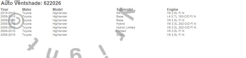 Below is an abbreviated list of applications for the Aeroskin Chrome Hood Protector.Highlander, Toyota, 2010, 2009, 2008