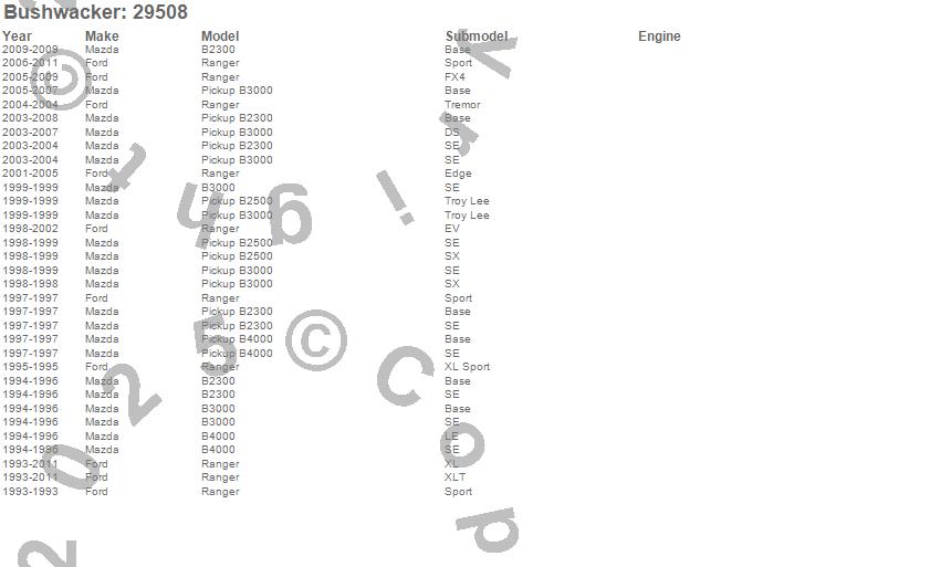 Below is an abbreviated list of applications for the Ultimate DiamondBack Bed Rail Cap.B2300, B2500, B3000, B4000, Ranger, Ford, Mazda, 2011, 2010, 2009, 2008, 2007, 2006, 2005, 2004, 2003, 2002, 2001, 2000, 1999