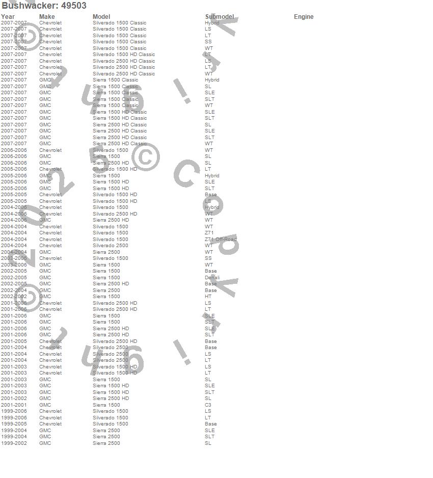 Below is an abbreviated list of applications for the Ultimate DiamondBack Bed Rail Cap.Sierra 1500, Sierra 1500 Classic, Sierra 1500 HD, Sierra 1500 HD Classic, Sierra 2500, Sierra 2500 HD, Sierra 2500 HD Classic, Silverado 1500, Silverado 1500 Classic, Silverado 1500 HD, Silverado 1500 HD Classic, Silverado 2500, Silverado 2500 HD, Silverado 2500 HD Classic, Chevrolet, GMC, 2007, 2006, 2005, 2004