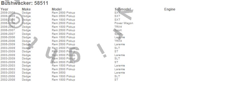 Below is an abbreviated list of applications for the Ultimate SmoothBack Bed Rail Cap.Ram 1500, Ram 2500, Ram 3500, Dodge, 2009, 2008, 2007, 2006, 2005, 2004, 2003, 2002
