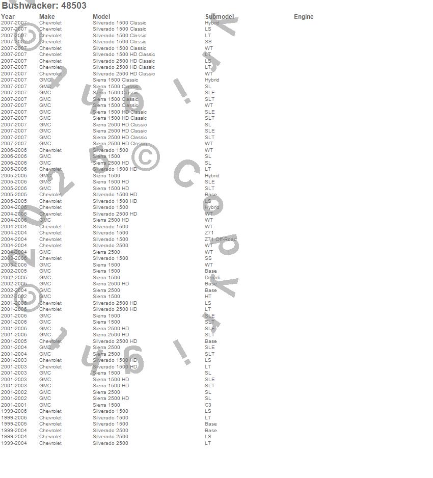Below is an abbreviated list of applications for the Ultimate SmoothBack Bed Rail Cap.Sierra 1500, Sierra 1500 Classic, Sierra 1500 HD, Sierra 1500 HD Classic, Sierra 2500, Sierra 2500 HD, Sierra 2500 HD Classic, Silverado 1500, Silverado 1500 Classic, Silverado 1500 HD, Silverado 1500 HD Classic, Silverado 2500, Silverado 2500 HD, Silverado 2500 HD Classic, Chevrolet, GMC, 2007, 2006, 2005, 2004