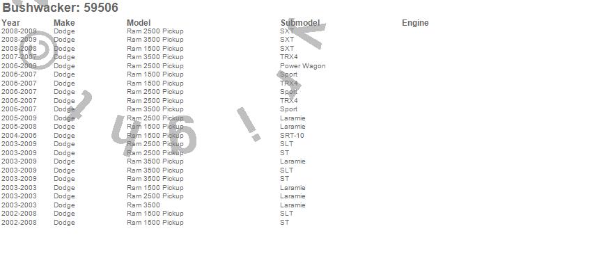 Below is an abbreviated list of applications for the Ultimate DiamondBack Tailgate Cap.Ram 1500, Ram 2500, Ram 3500, Dodge, 2009, 2008, 2007, 2006, 2005, 2004, 2003, 2002