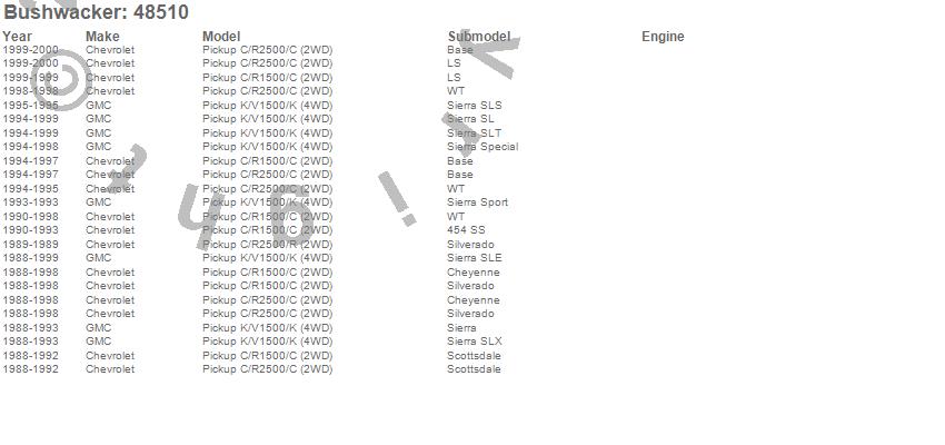 Below is an abbreviated list of applications for the Ultimate SmoothBack Tailgate Cap.C1500 Pickup, C2500 Pickup, K1500, K1500 Pickup, R2500 Pickup, Chevrolet, GMC, 2000, 1999, 1998, 1997, 1996, 1995, 1994, 1993, 1992, 1991, 1990, 1989, 1988