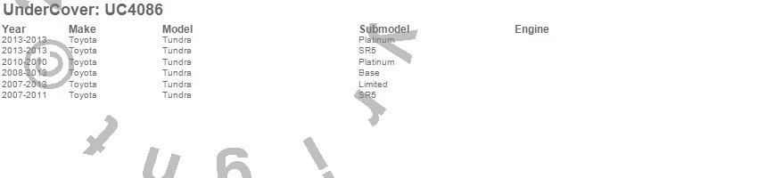 Below is an abbreviated list of applications for the SE Tonneau Cover.Tundra, Toyota, 2013, 2012, 2011, 2010, 2009, 2008, 2007