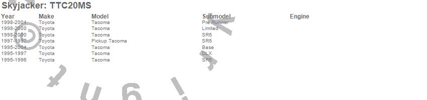 Brand: SkyjackerPart Number: TTC20MSSuspension Front Leveling Kit Type: Front - 2 in. LiftUPC: 803696193748
