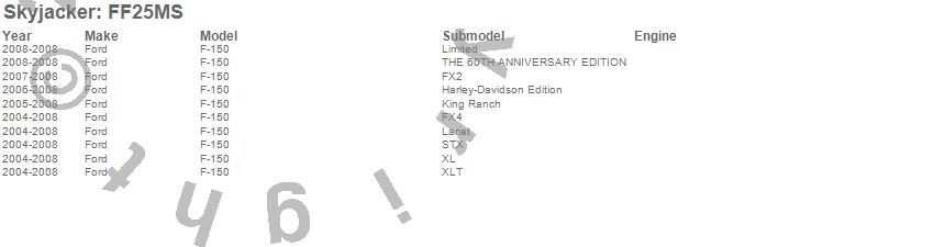 Below is an abbreviated list of applications for the Aluminum Spacer Leveling Kit.F-150 Pickup, Ford, 2008, 2007, 2006, 2005, 2004