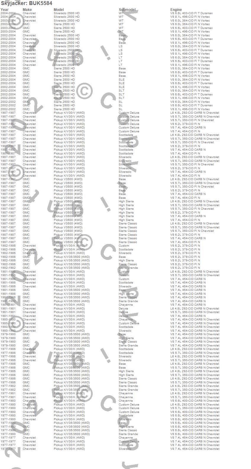 Below is an abbreviated list of applications for the Block And U-Bolt Kit.K30 Pickup, K35 Pickup, K3500 Pickup, Sierra 2500 HD, Silverado 2500 HD, V30 Pickup, V3500 Pickup, Chevrolet, GMC, 2004, 2003, 2002, 1987, 1986, 1985, 1984, 1983, 1982, 1981, 1980