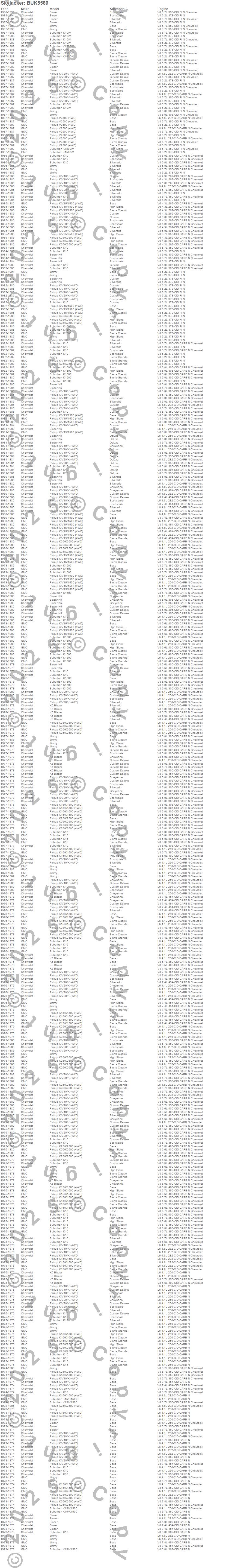 Below is an abbreviated list of applications for the Block And U-Bolt Kit.Blazer, Blazer K5, Jimmy, K10 Pickup, K10 Suburban, K15 Pickup, K15 Suburban, K15/K1500 Pickup, K15/K1500 Suburban, K1500 Pickup, K1500 Suburban, K20 Pickup, K25 Pickup, K25/K2500 Pickup, K2500 Pickup, V10 Suburban, V1500 Suburban, V20 Pickup, V2500 Pickup, Chevrolet