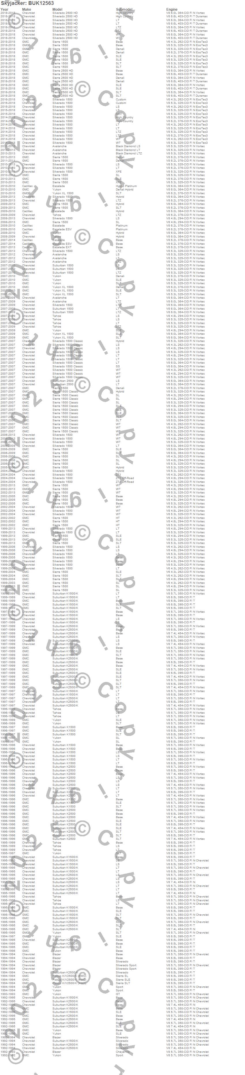 Below is an abbreviated list of applications for the Block And U-Bolt Kit.Avalanche, Blazer, Escalade, Escalade ESV, Escalade EXT, K1500 Suburban, K2500 Suburban, Sierra 1500, Sierra 1500 Classic, Silverado 1500, Silverado 1500 Classic, Suburban 1500, Suburban 2500, Tahoe, Yukon, Yukon XL 1500, Cadillac, Chevrolet, GMC, 2013