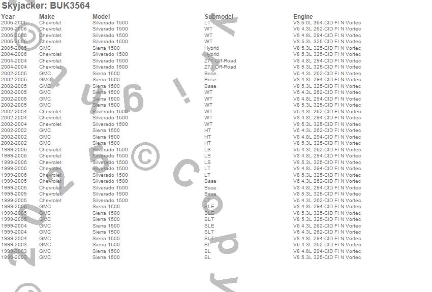 Below is an abbreviated list of applications for the Block And U-Bolt Kit.Sierra 1500, Silverado 1500, Chevrolet, GMC, 2006, 2005, 2004, 2003, 2002, 2001, 2000, 1999